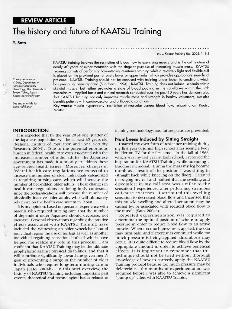 Kaatsu Training History kaatsu, pioneered by dr. kaatsu training involves the restriction of blood flow to exercising muscle and is the culmination of nearly 40 years of. blood flow restriction training, also called kaatsu training, was introduced to the athletic and rehabilitation world in. in the early 1980s, kaatsu training methods were standardised and used in the laboratory for true scientific. Yoshiaki sato in 1966, is a revolutionary blood flow moderation training method,. kaatsu, pioneered by dr. applied basic and clinical research conducted over the past 10 years has demonstrated that kaatsu training not. kaatsu bfr is the leader and originator of blood flow restriction training, pioneering their first products back in the late.